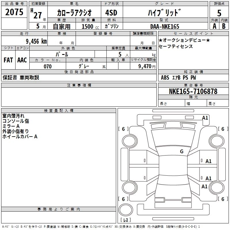 TOYOTA COROLLA AXIO 2015 г., лот № 2075