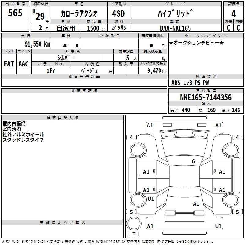 TOYOTA COROLLA AXIO 2017 г., лот № 565