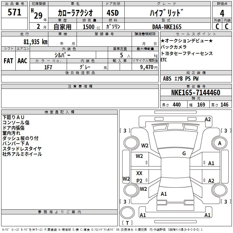 TOYOTA COROLLA AXIO 2017 г., лот № 571