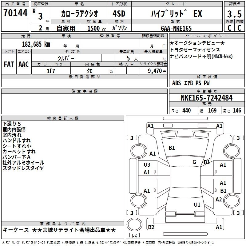 TOYOTA COROLLA AXIO 2021 г., лот № 70144