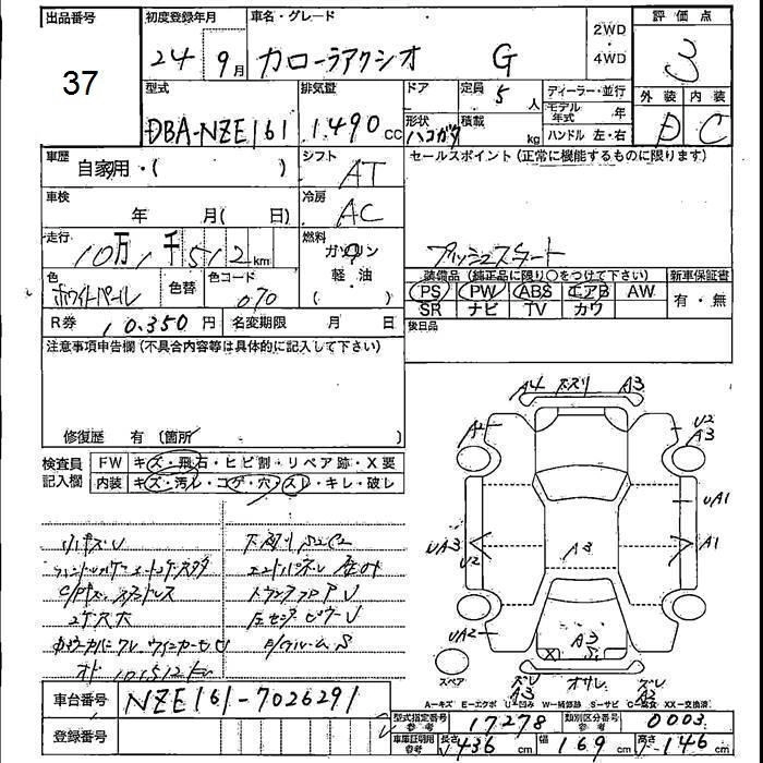 TOYOTA COROLLA AXIO 2012 г., лот № 37