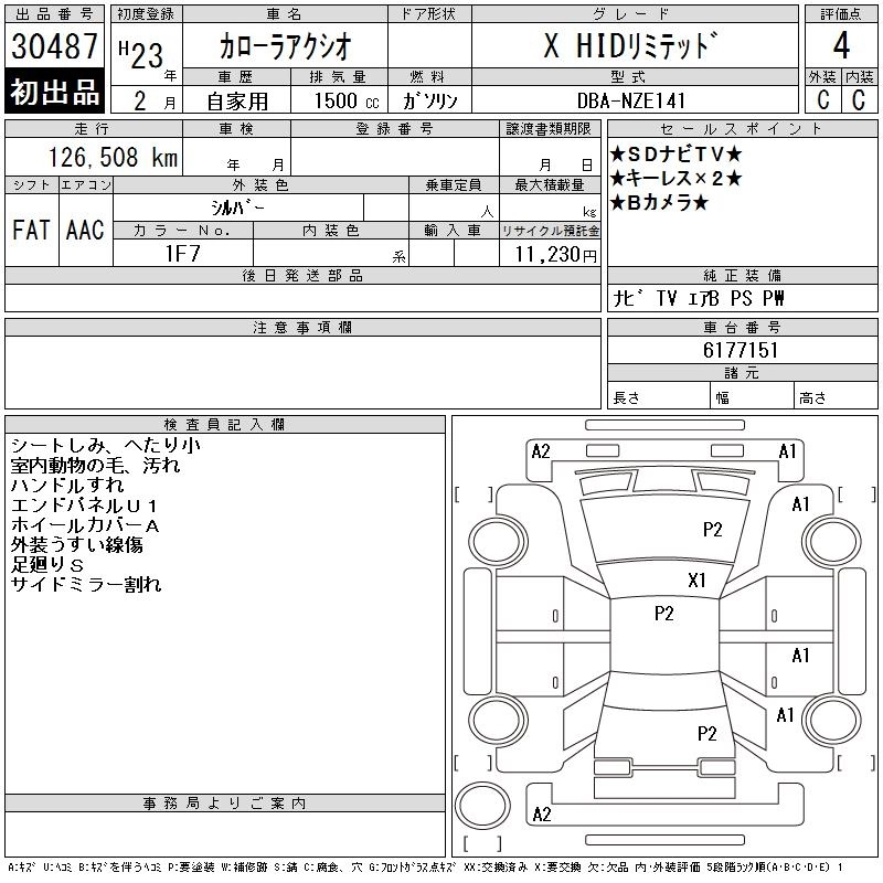 TOYOTA COROLLA AXIO 2011 г., лот № 30487