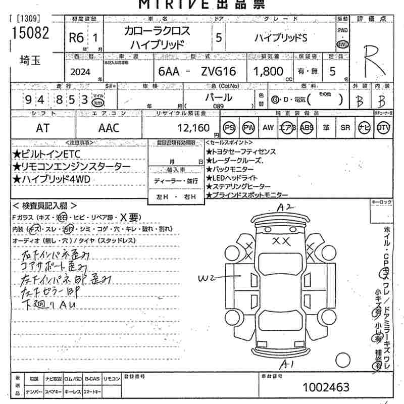 TOYOTA COROLLA CROSS 2024 г., лот № 15082