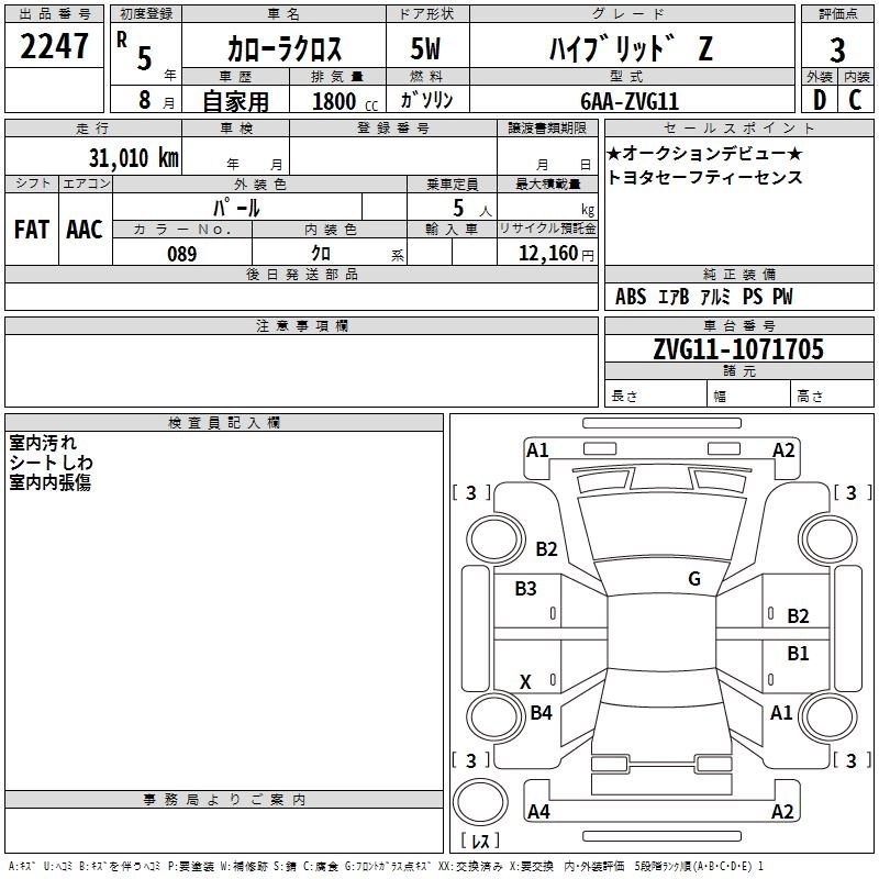 Статус выставлен на аукцион Лот 2247 Аукцион TAA Chubu Дата аукциона 12.03.2026