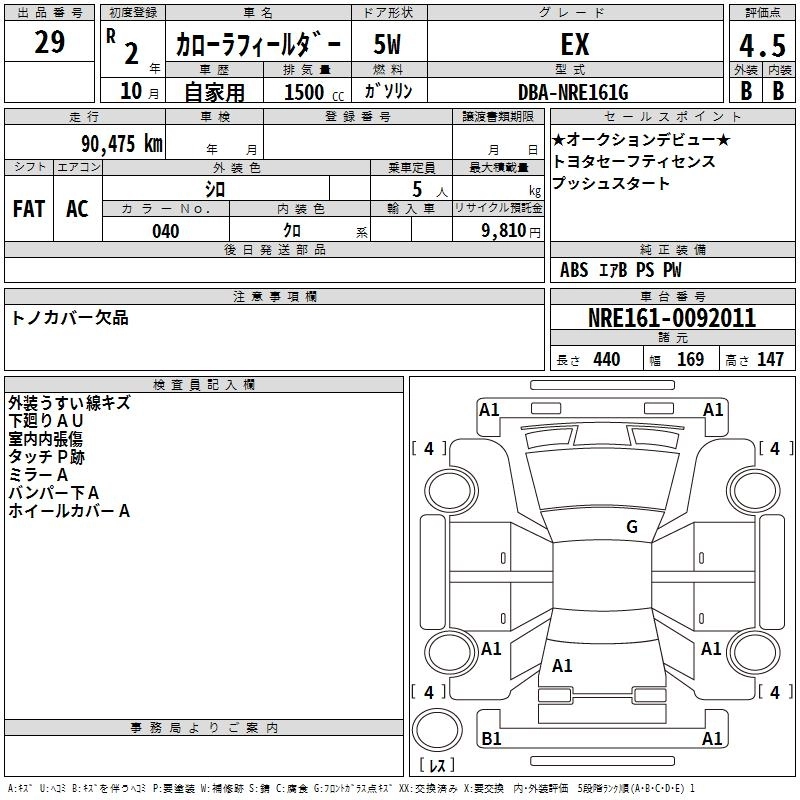TOYOTA COROLLA FIELDER 2020 г., лот № 29