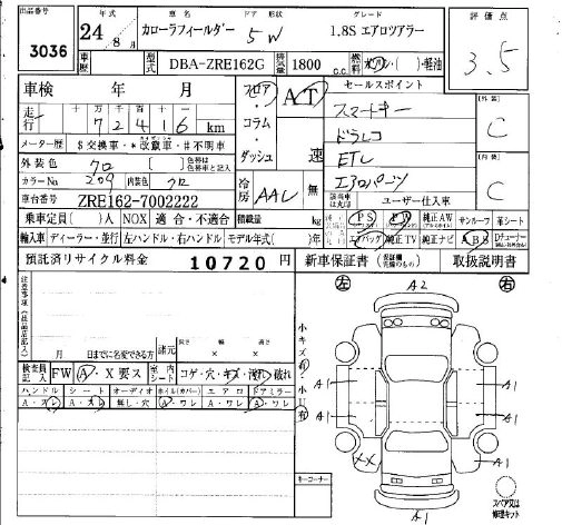 TOYOTA COROLLA FIELDER 2012 г., лот № 3036