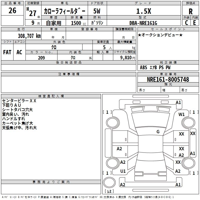 TOYOTA COROLLA FIELDER 2015 г., лот № 26