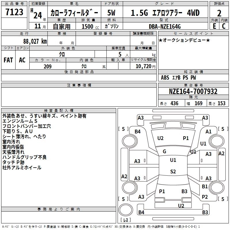 TOYOTA COROLLA FIELDER 2012 г., лот № 7123