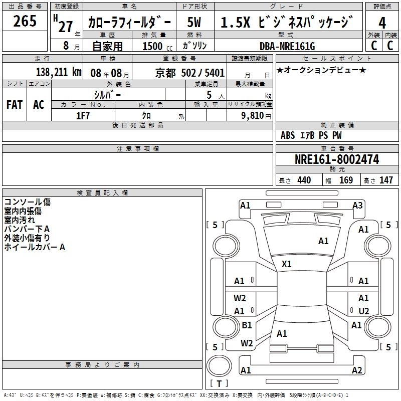 Год выпуска2015 Пробег 138 000 км КузовNRE161G Комплектация1.5X BUSINESS PACKAGE