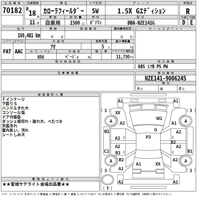 Год выпуска2006 Пробег 169 000 км КузовNZE141G Комплектация1.5X G EDITION