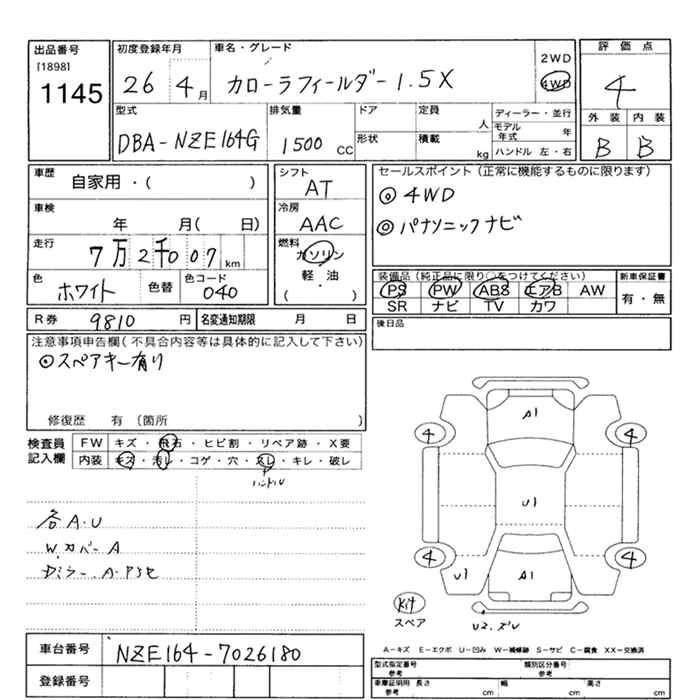 TOYOTA COROLLA FIELDER 2014 г., лот № 1145