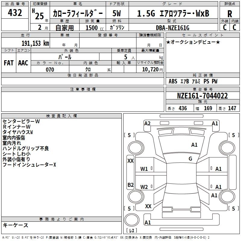 TOYOTA COROLLA FIELDER 2013 г., лот № 432