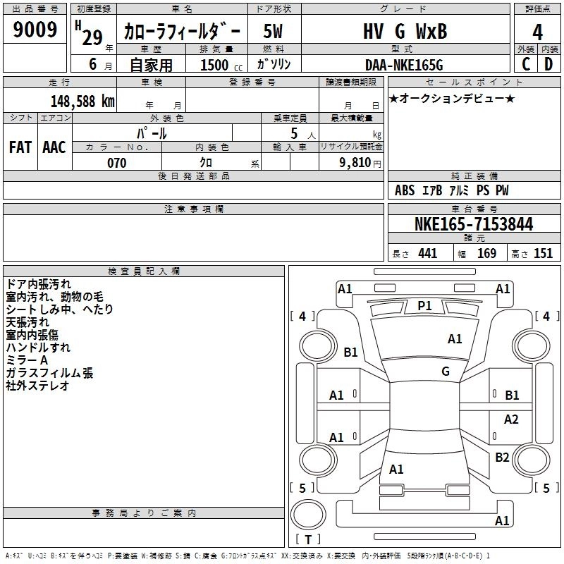 TOYOTA COROLLA FIELDER 2017 г., лот № 9009