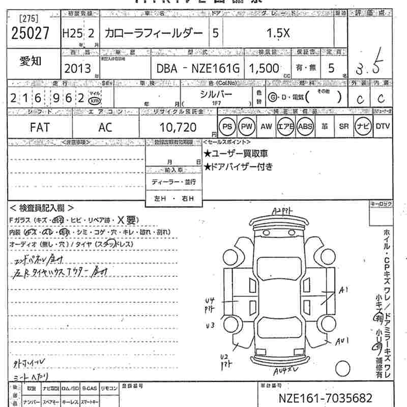 TOYOTA COROLLA FIELDER 2013 г., лот № 25027