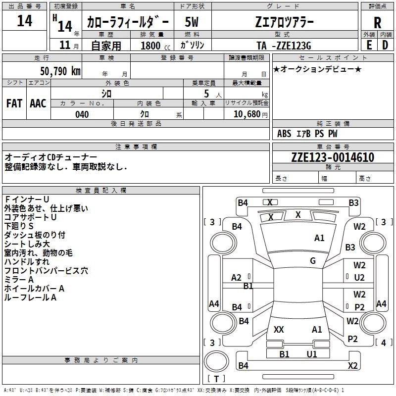 TOYOTA COROLLA FIELDER 2002 г., лот № 14