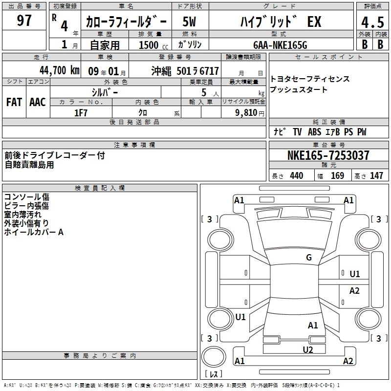 TOYOTA COROLLA FIELDER 2022 г., лот № 97