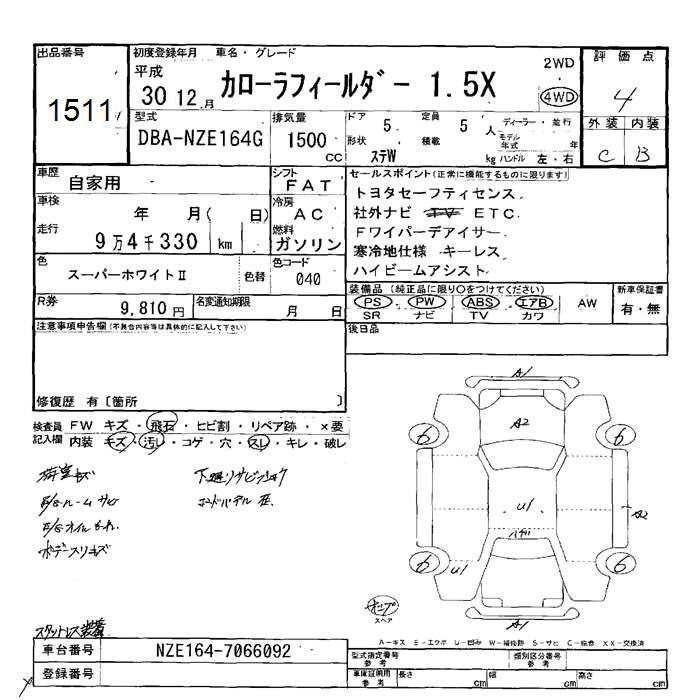 TOYOTA COROLLA FIELDER 2018 г., лот № 1511