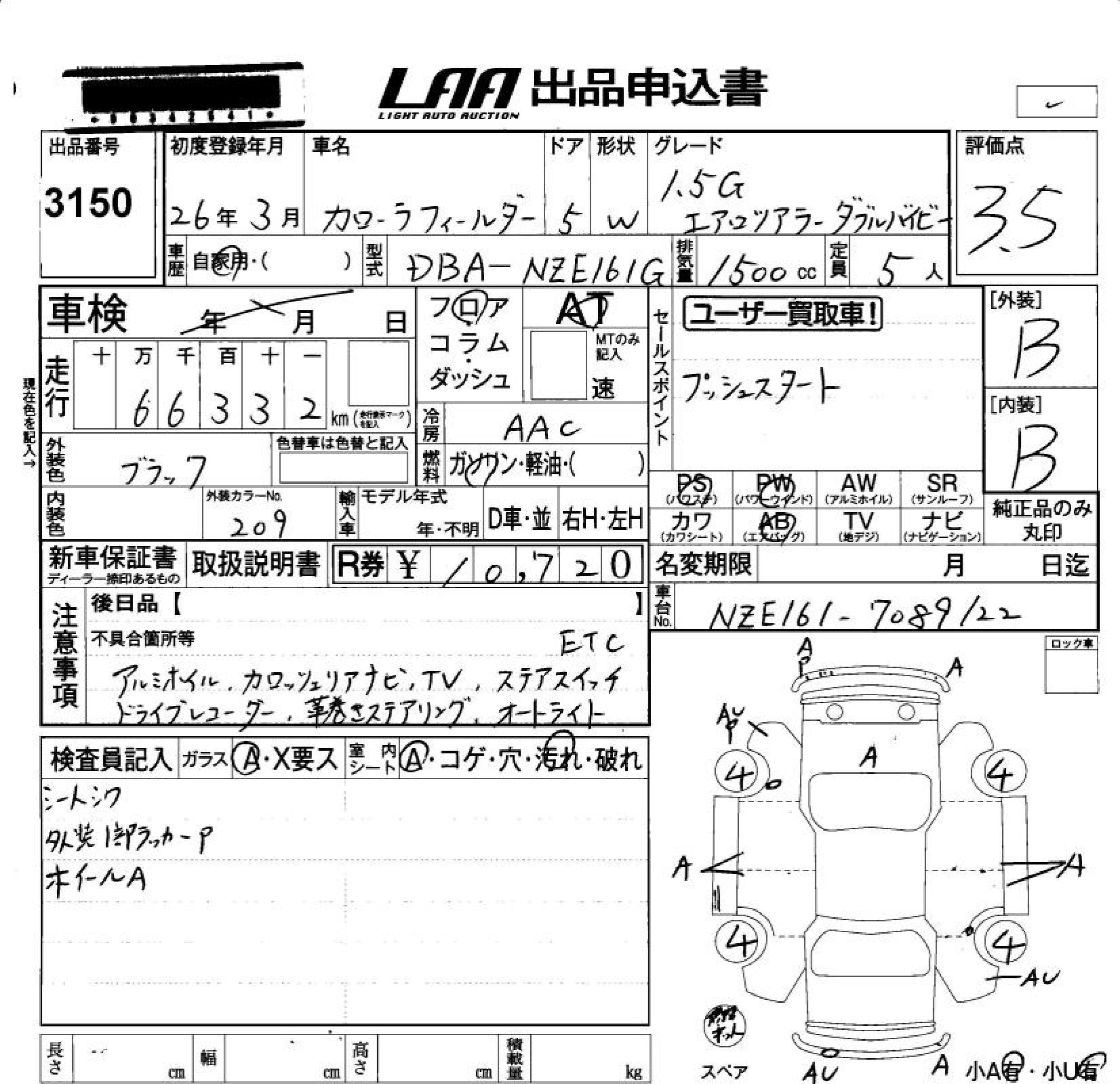 Статус не продан Лот 3150 Аукцион LAA Okayama Дата аукциона 23.01.2026