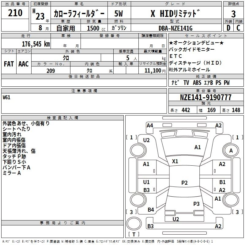 TOYOTA COROLLA FIELDER 2011 г., лот № 210