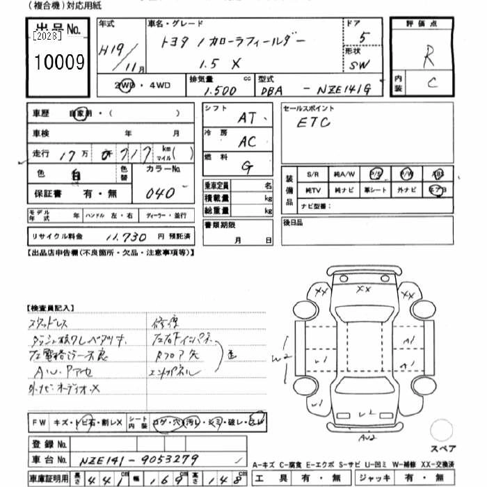 TOYOTA COROLLA FIELDER 2007 г., лот № 10009