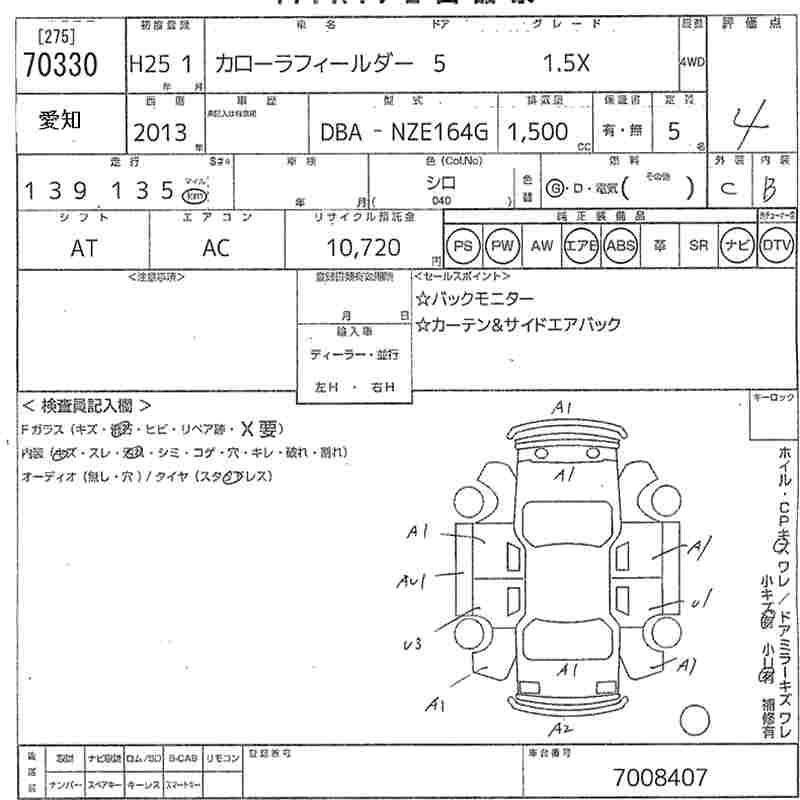 TOYOTA COROLLA FIELDER 2013 г., лот № 70330