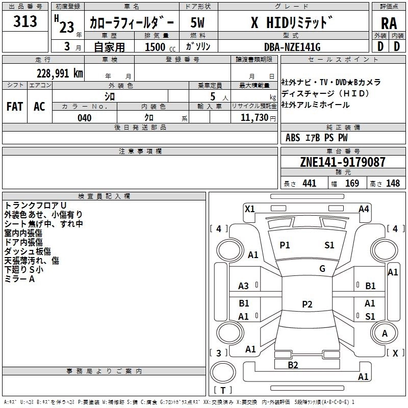 TOYOTA COROLLA FIELDER 2011 г., лот № 313