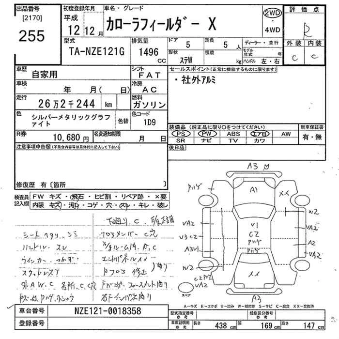 TOYOTA COROLLA FIELDER 2000 г., лот № 255