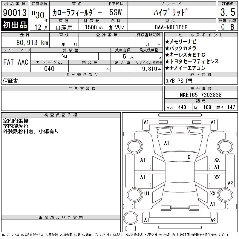 TOYOTA COROLLA FIELDER 2018 г., лот № 90013