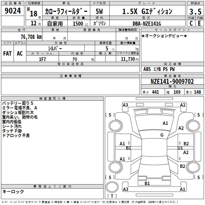 TOYOTA COROLLA FIELDER 2006 г., лот № 9024