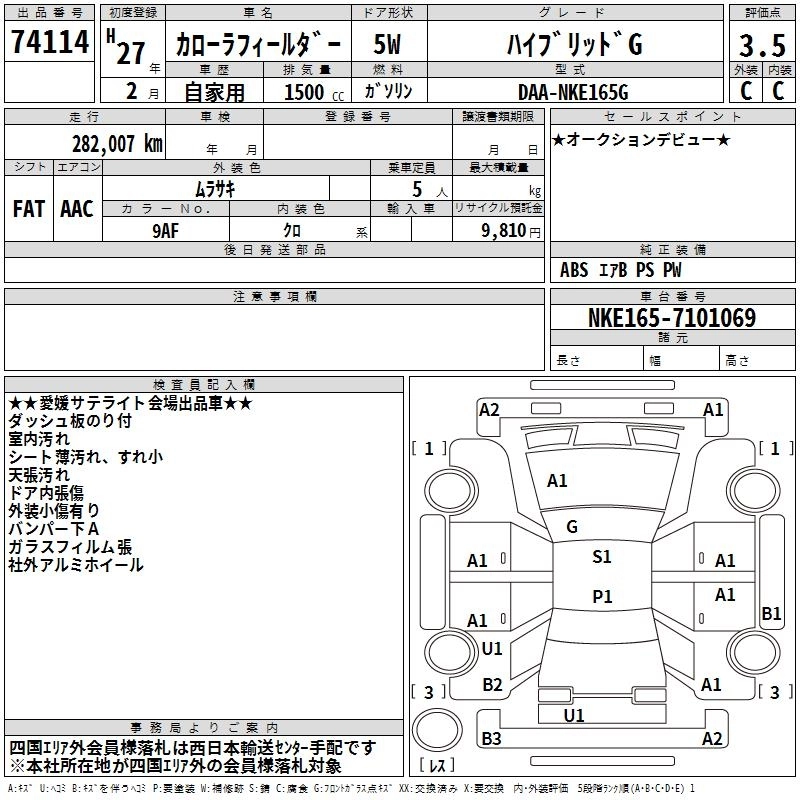 TOYOTA COROLLA FIELDER 2015 г., лот № 74114