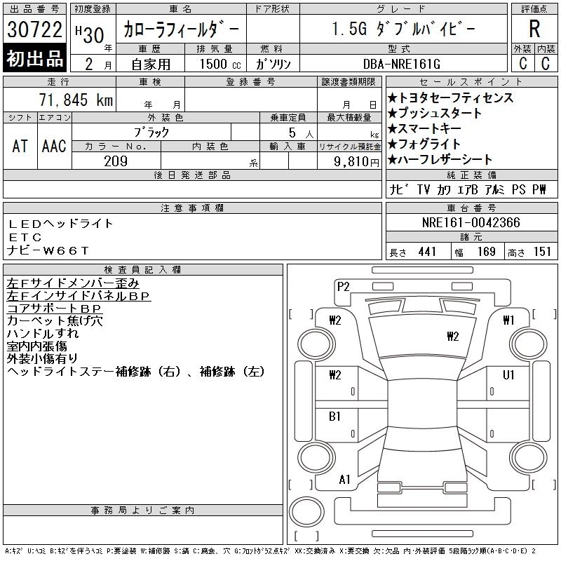 TOYOTA COROLLA FIELDER 2018 г., лот № 30722