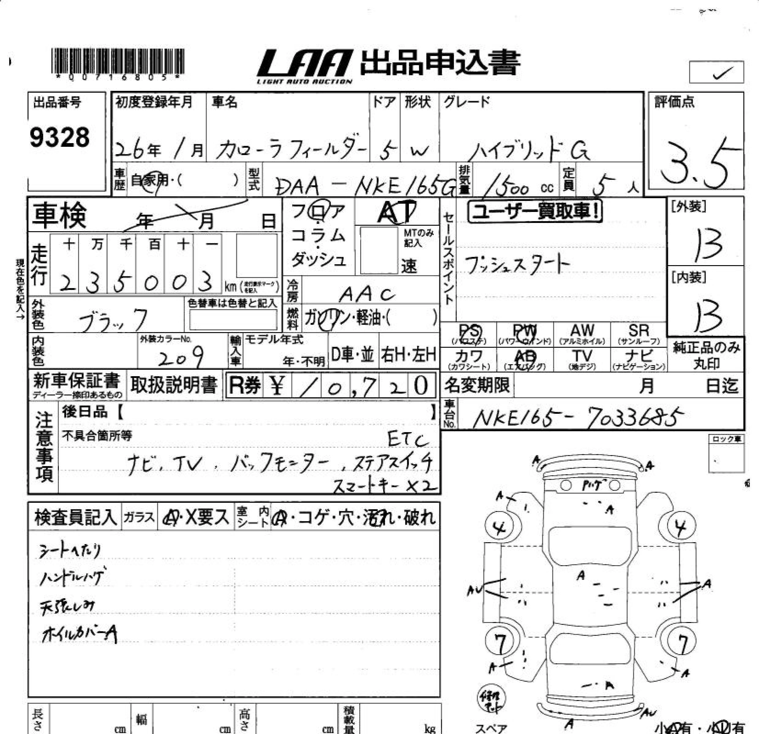 Статус продан Лот 9328 Аукцион LAA Okayama Дата аукциона 06.02.2026