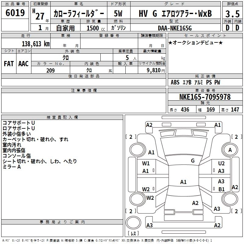 TOYOTA COROLLA FIELDER 2015 г., лот № 6019