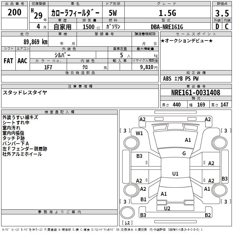 TOYOTA COROLLA FIELDER 2017 г., лот № 200