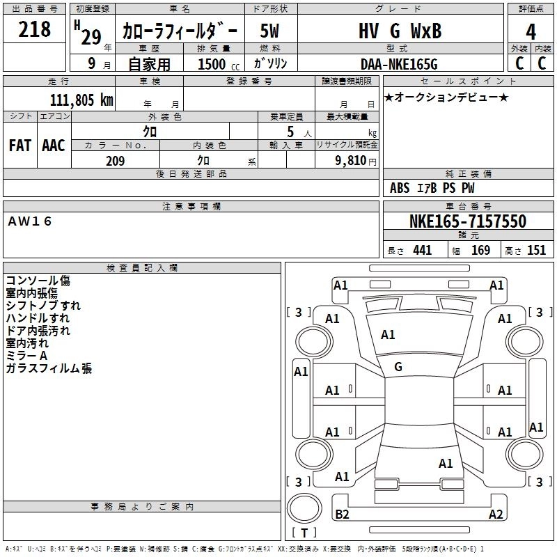 TOYOTA COROLLA FIELDER 2017 г., лот № 218