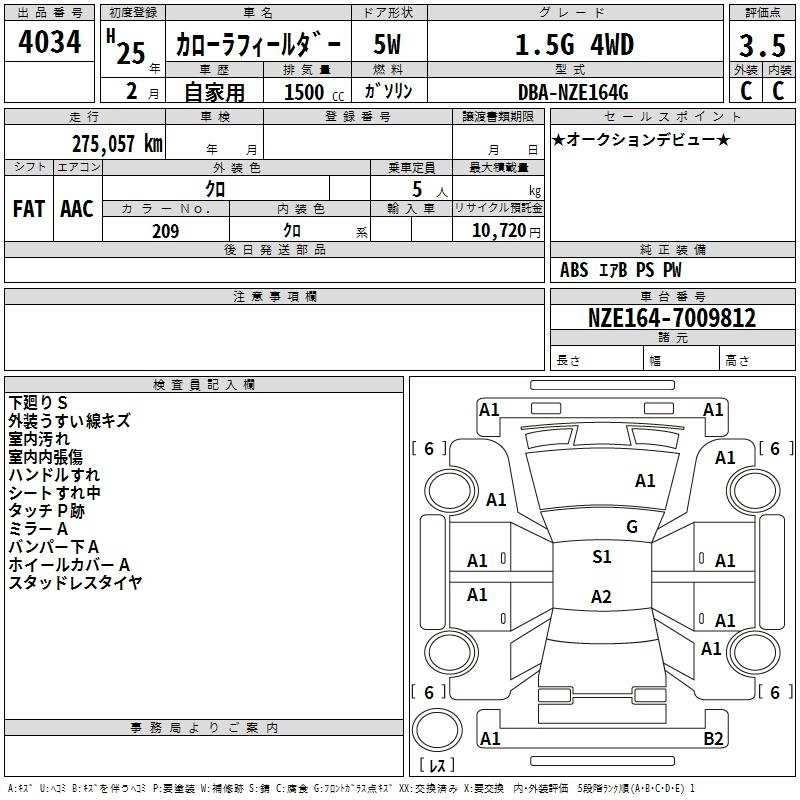 TOYOTA COROLLA FIELDER 2013 г., лот № 4034