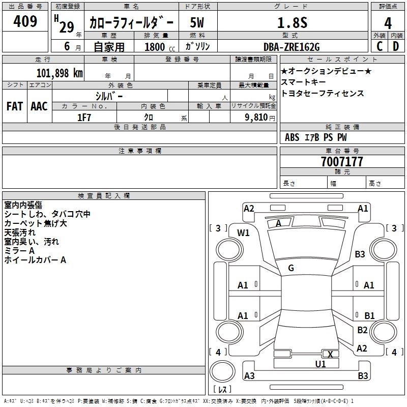 TOYOTA COROLLA FIELDER 2017 г., лот № 409