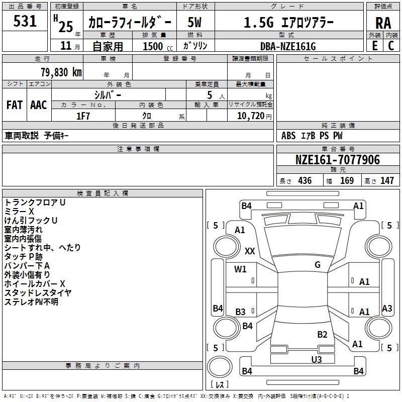TOYOTA COROLLA FIELDER 2013 г., лот № 531