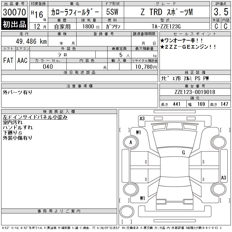 TOYOTA COROLLA FIELDER 2004 г., лот № 30070