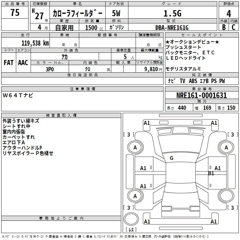 Год выпуска2015 Пробег 120 000 км КузовNRE161G Комплектация1.5G