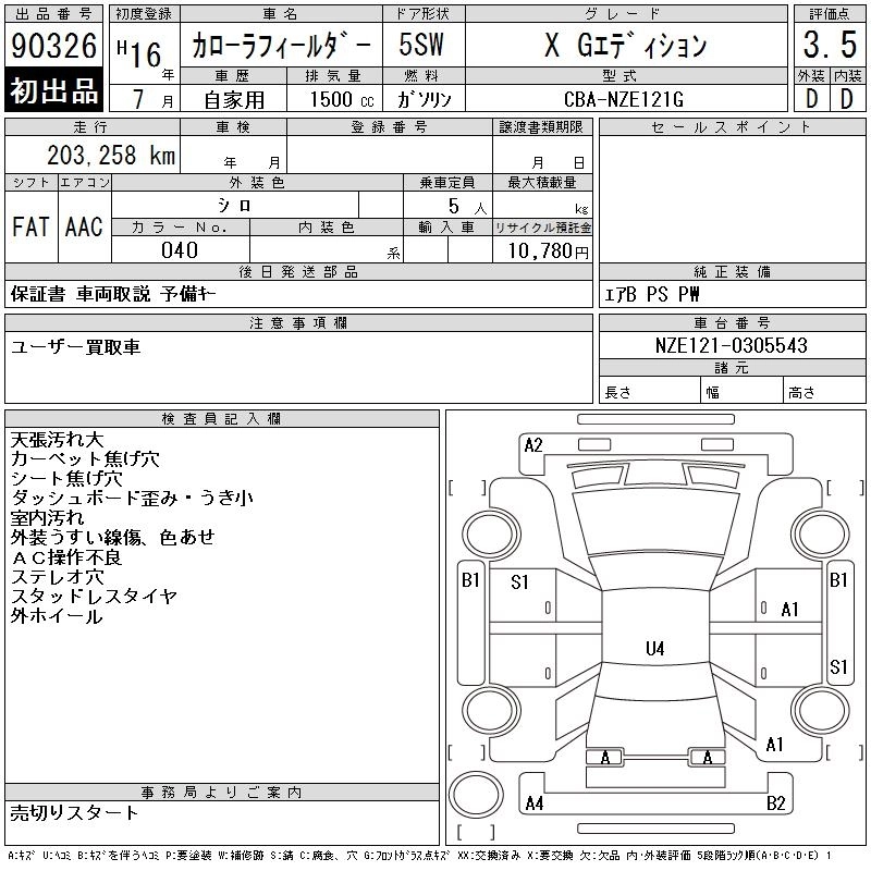 TOYOTA COROLLA FIELDER 2004 г., лот № 90326