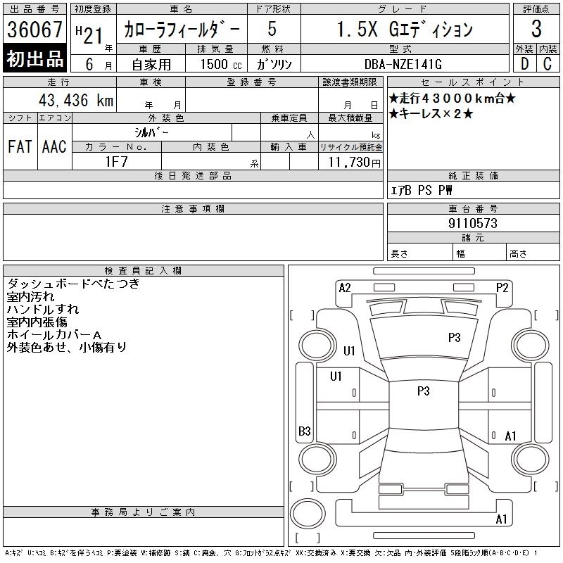 TOYOTA COROLLA FIELDER 2009 г., лот № 36067