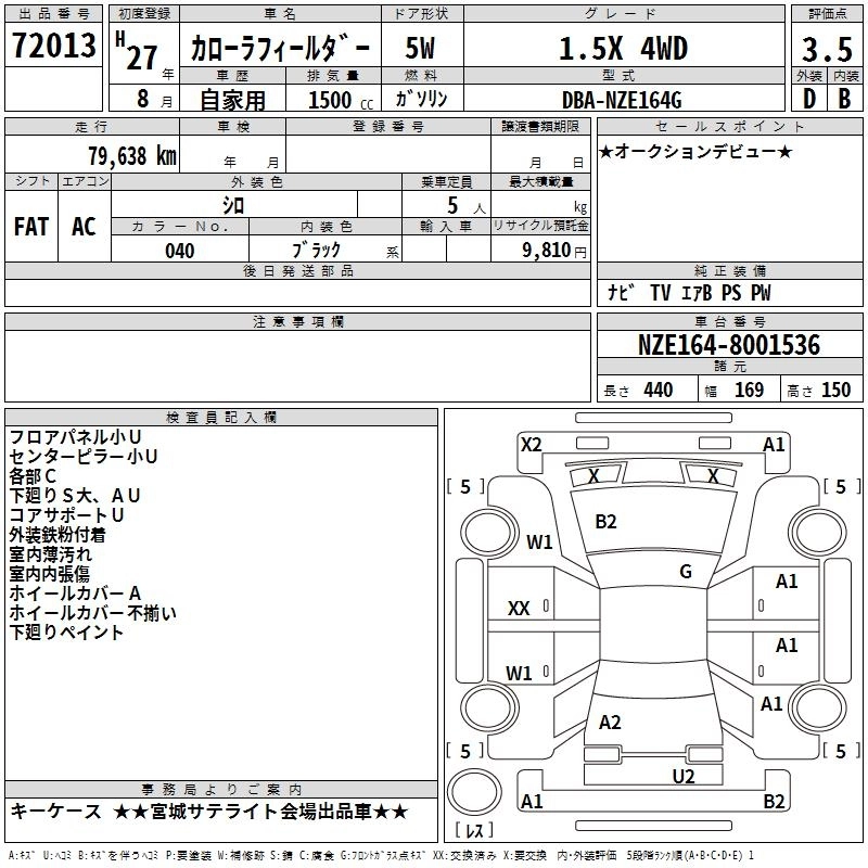 TOYOTA COROLLA FIELDER 2015 г., лот № 72013