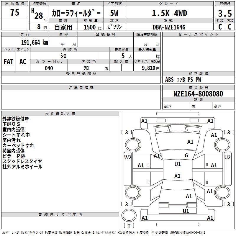 TOYOTA COROLLA FIELDER 2016 г., лот № 75