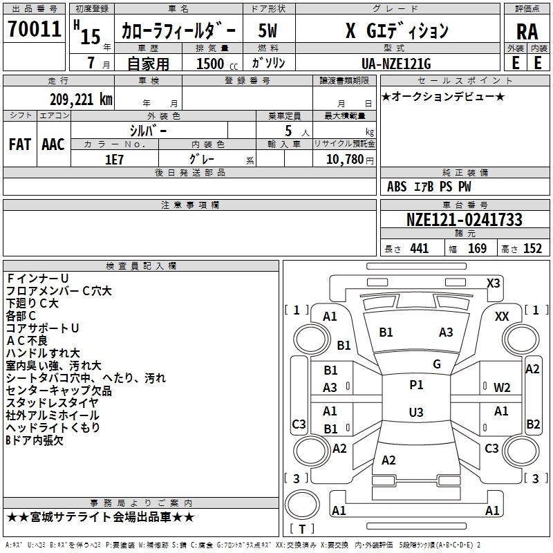 TOYOTA COROLLA FIELDER 2003 г., лот № 70011