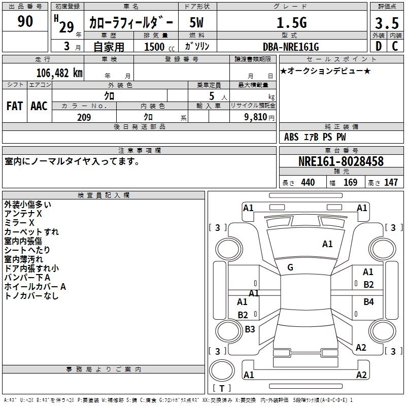 TOYOTA COROLLA FIELDER 2017 г., лот № 90