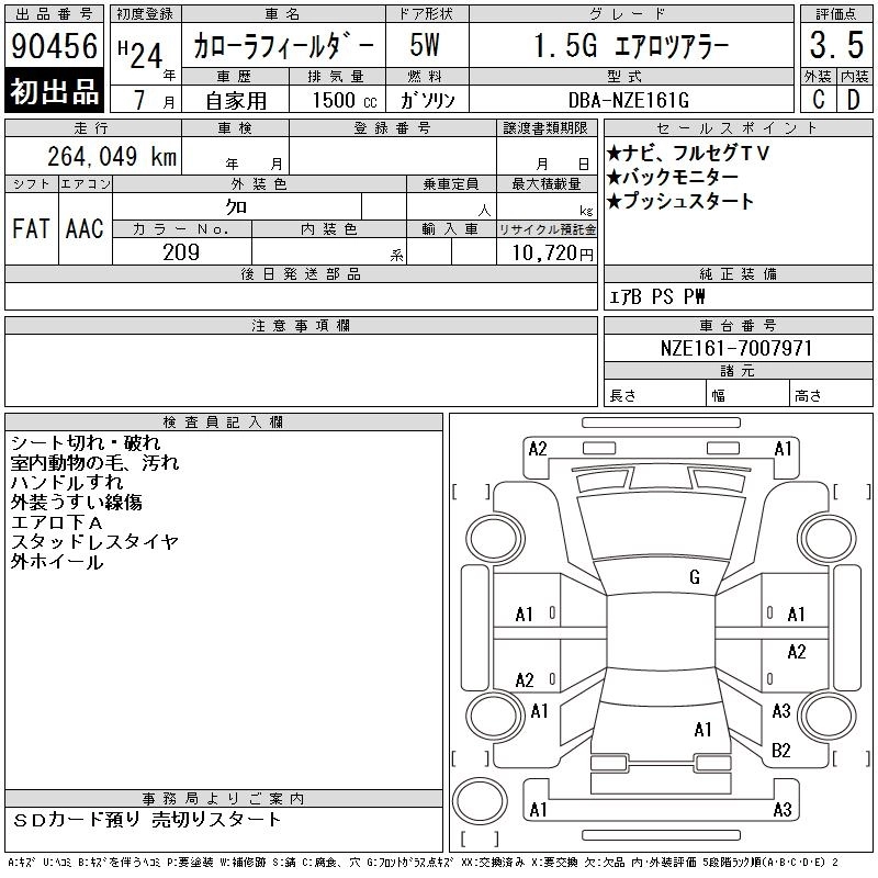 Год выпуска2012 Пробег 264 000 км КузовNZE161G Комплектация1.5G AERO TOURER