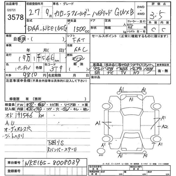 Год выпуска2015 Пробег 192 000 км КузовNKE165G Комплектация HYBRID G WXB