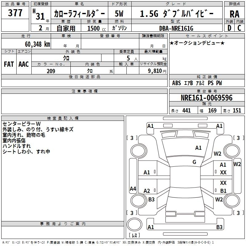 TOYOTA COROLLA FIELDER 2019 г., лот № 377
