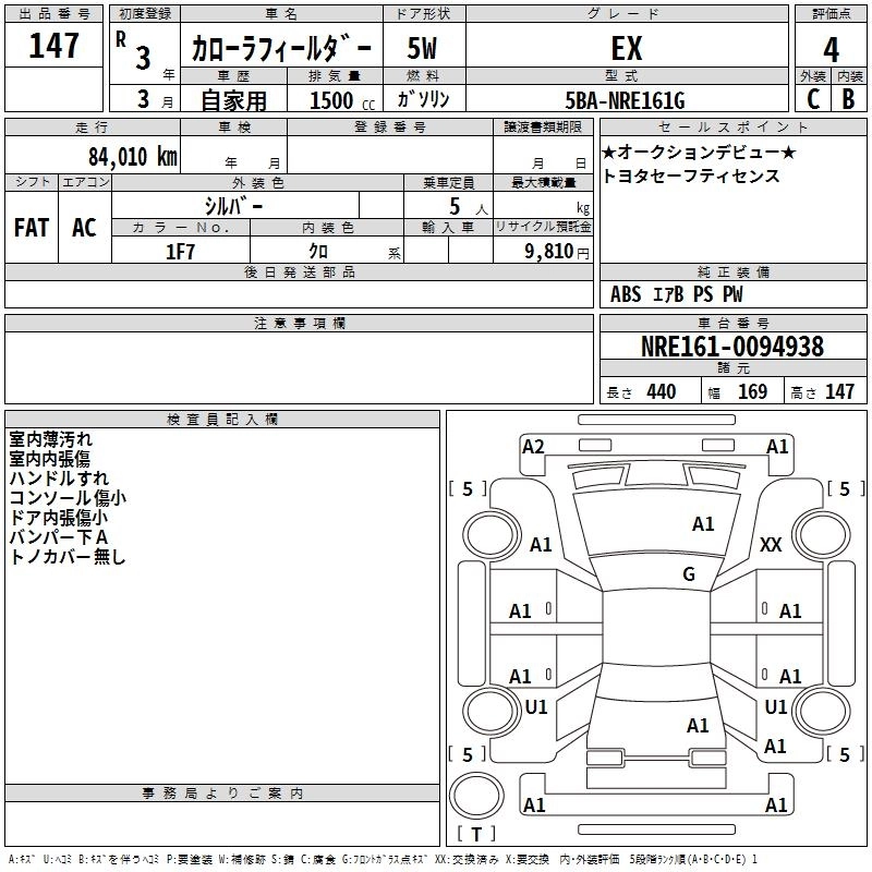 TOYOTA COROLLA FIELDER 2021 г., лот № 147